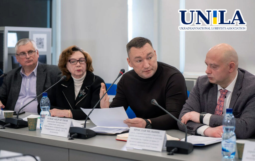 Модератором заходу виступила Інна Силантьєва, яка підкреслила важливість формування професійного середовища для обговорення стратегічних законодавчих ініціатив. Активну участь у дискусії взяли Голова Правління Національної асоціації лобістів України Олексій Шевчук, академік Василь Костицький, доктор юридичних наук Людмила Кожура, член Правління Асоціації Олександр Черних, професор Сергій Лисенко, а також інші представники наукової та експертної спільноти. До обговорення також долучилися представники провідних наукових і освітніх установ, зокрема Київського національного економічного університету імені Вадима Гетьмана, Київського національного університету імені Тараса Шевченка, Міжрегіональної академії управління персоналом, Інституту правотворчості та науково-правових експертиз НАН України, а також представники Міністерства оборони України та Генерального штабу Збройних Сил України.